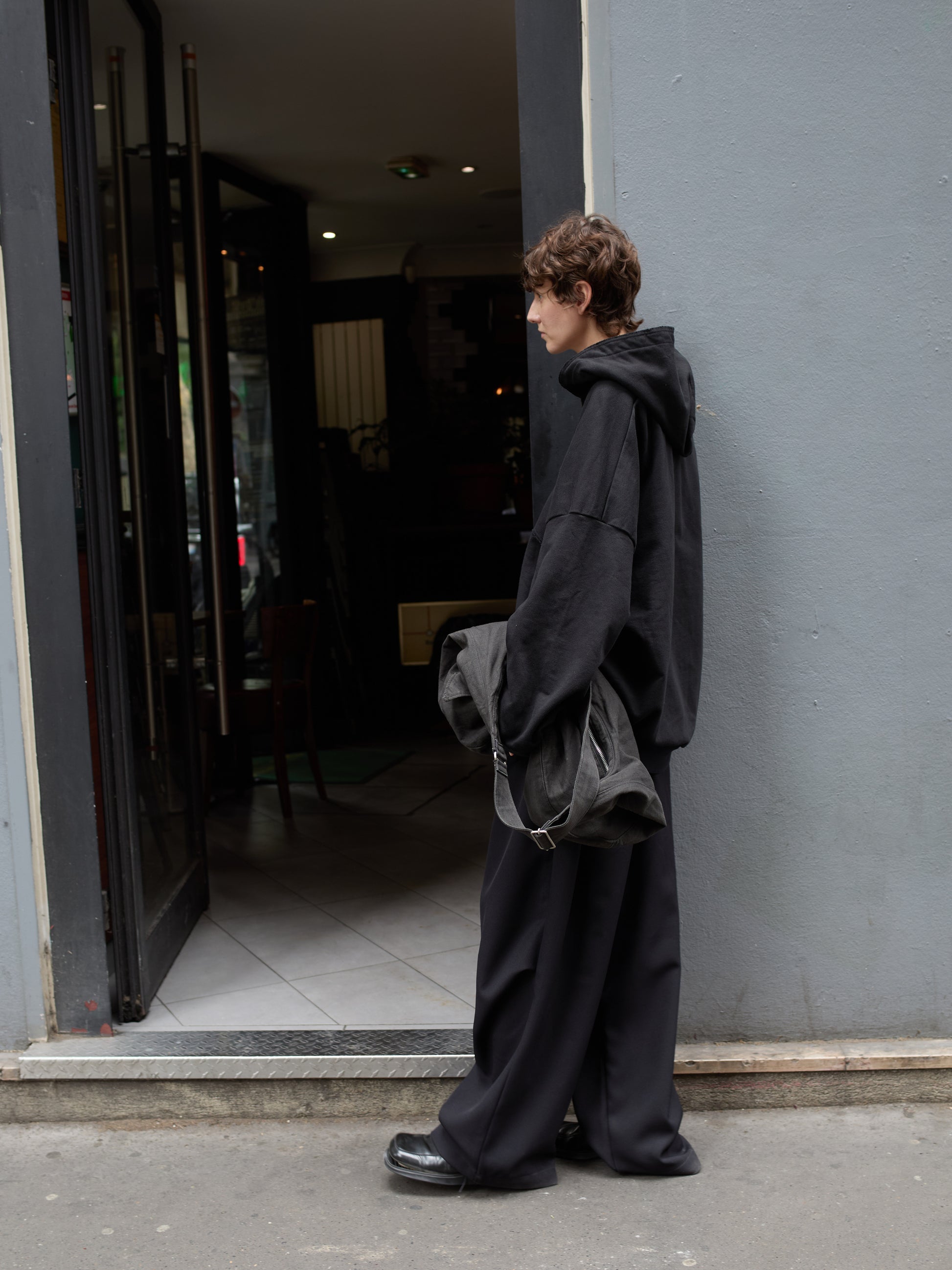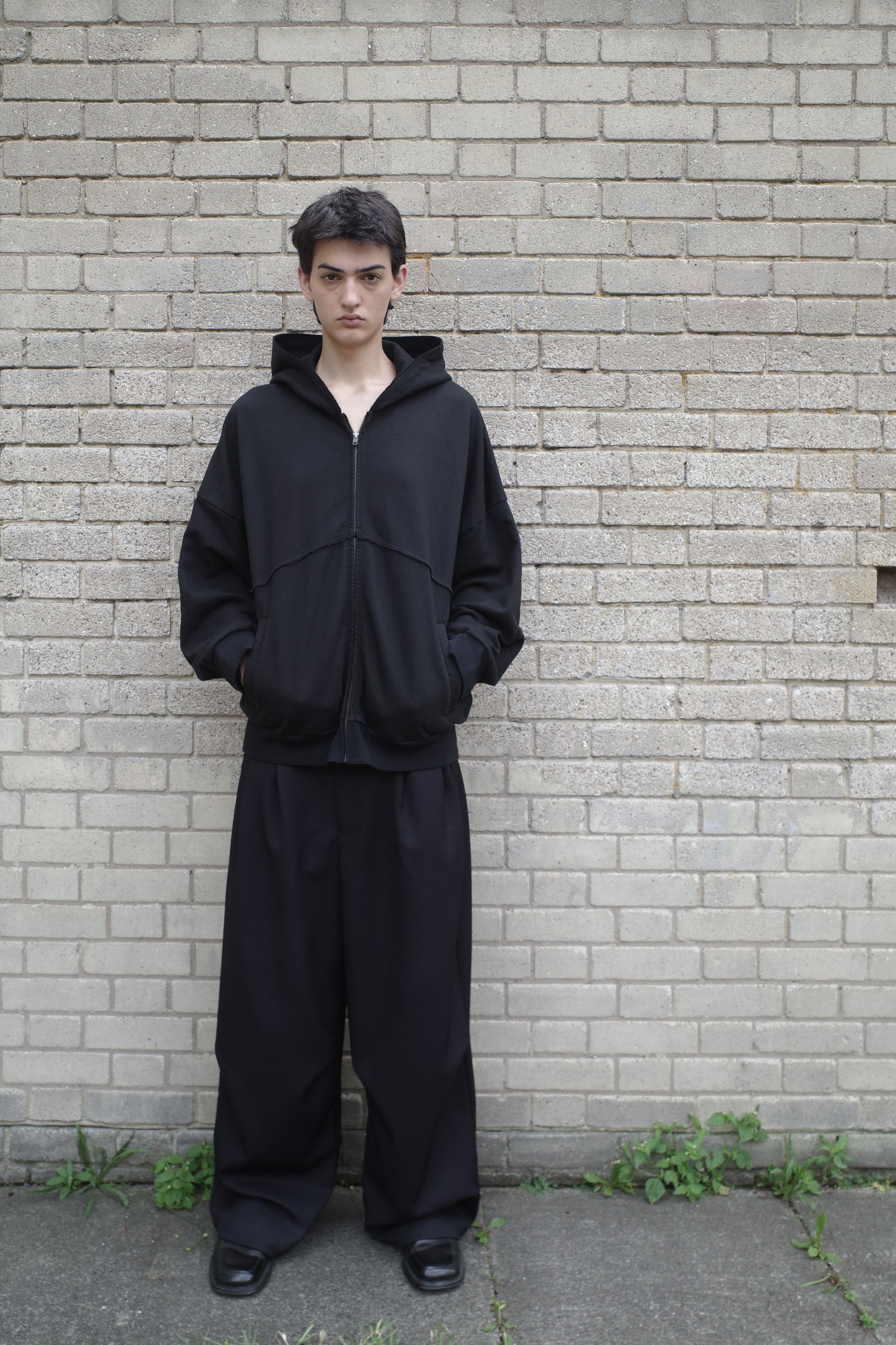 *フード、身頃切替え、袖口、裾部分が切りっぱなし仕様