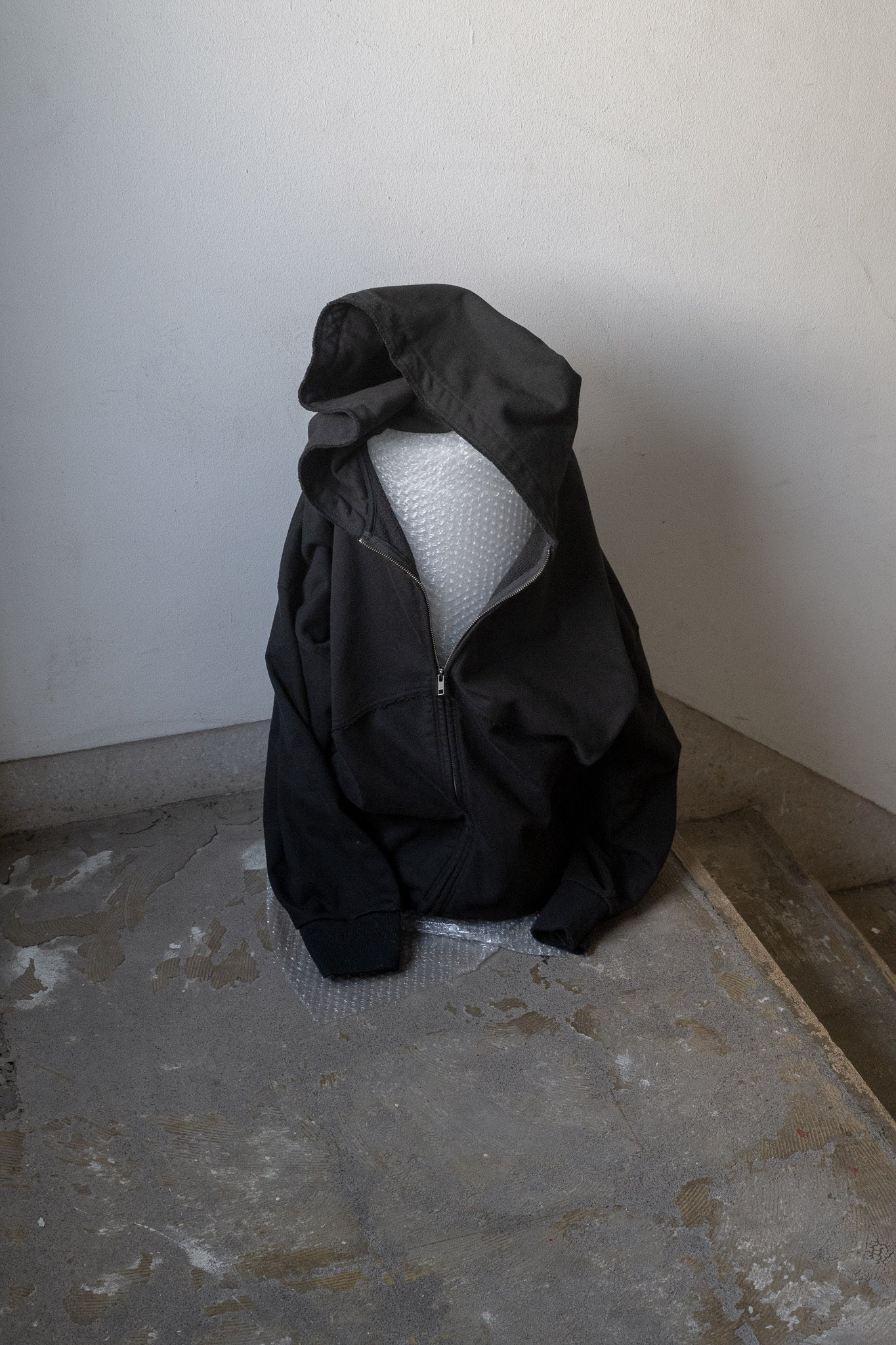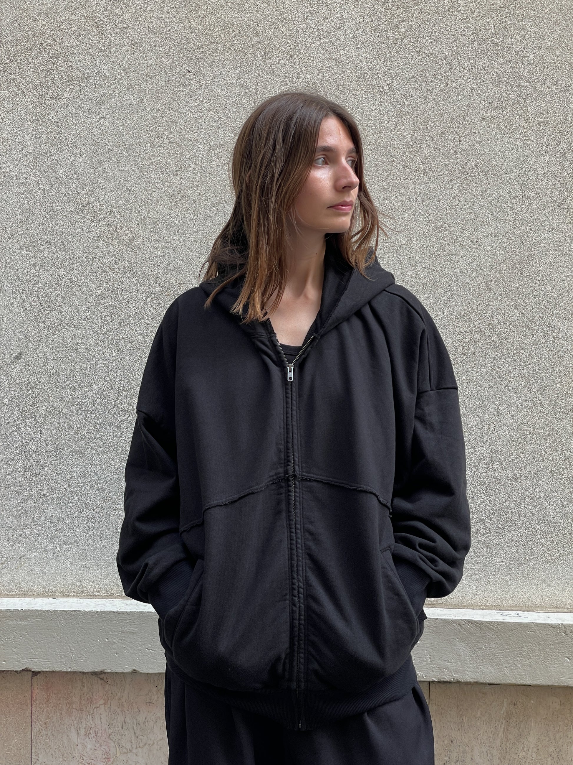 CUT OFF ZIP HOODIE - WASHED BLACK
